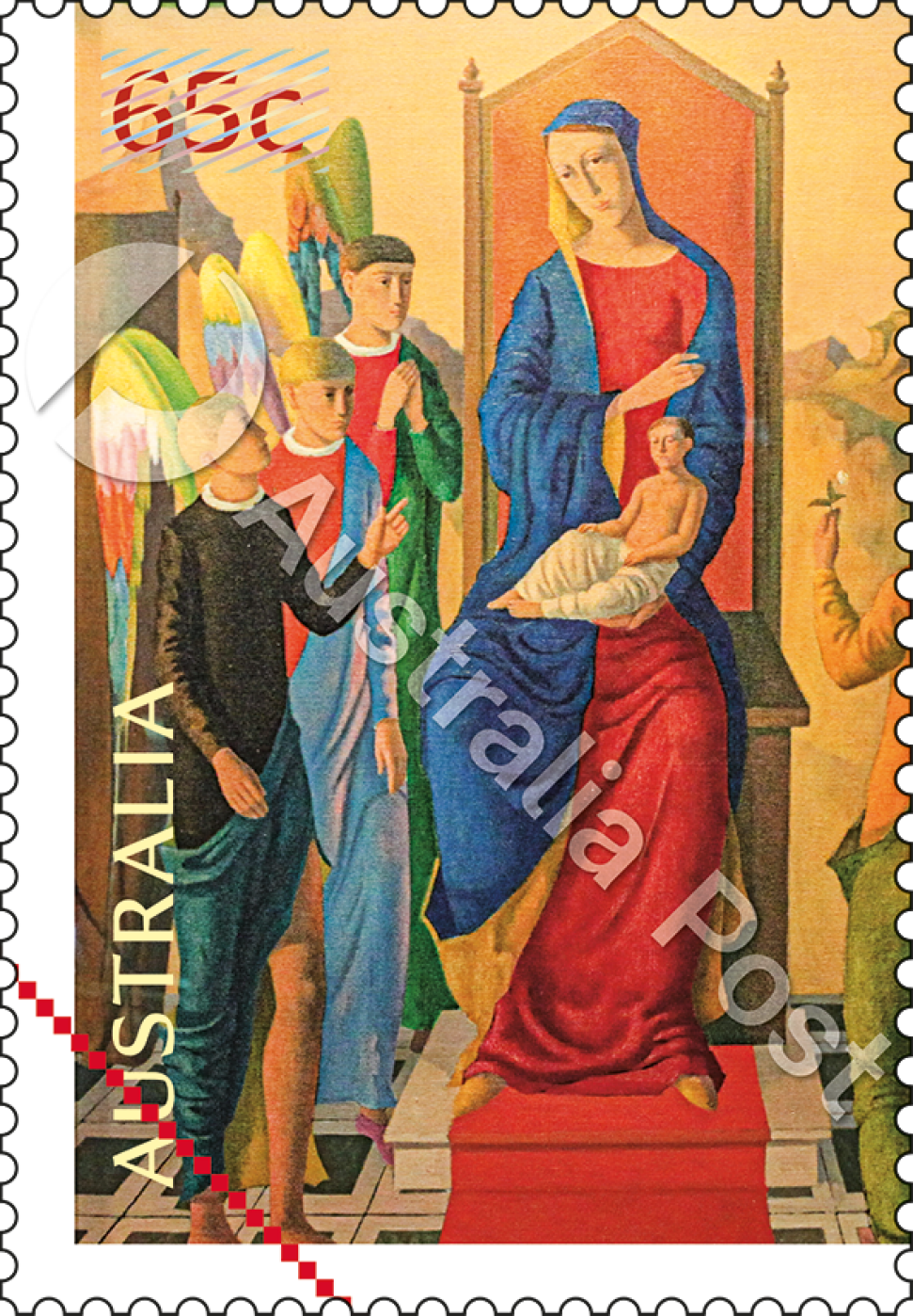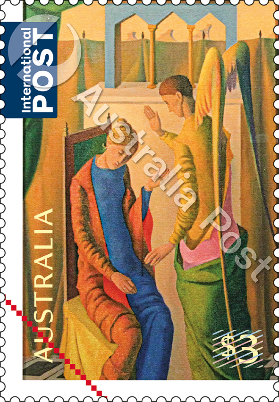 This year’s Christmas stamps feature details of an artwork by eminent Australian artist Justin O’Brien (1917–1996). For much of his life, Sydney-born O’Brien lived and worked overseas, where he was strongly influenced by Byzantine and Renaissance art. O’Brien is best known for his works on religious themes.