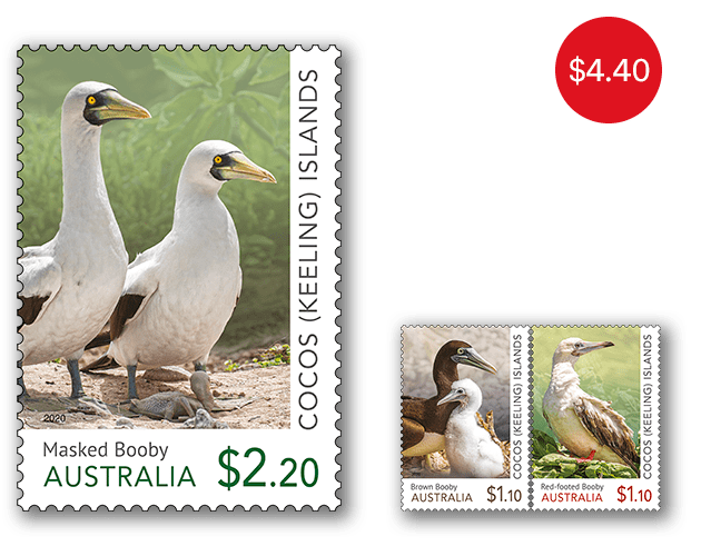 This set of stamps contains all three stamps from the Cocos (Keeling) Islands: Booby Birds stamp issue.