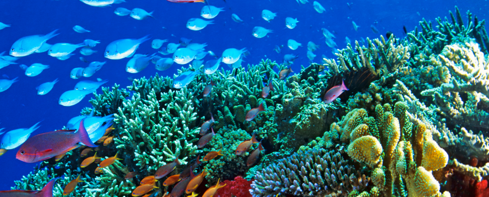 Unique belly markings are used to identify individual rays, and there have been 72 reef manta rays identified around the Cocos (Keeling) Islands, with 12 individuals seen more than once. As the name suggests, this ray is generally seen in reefs close to shore but may venture out to depth to feed on zooplankton, the tiny, microscopic animals found in the water column. The female gives birth to one or sometimes two pups after a gestation period of around 12 months.